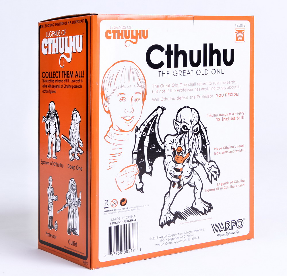 Diamond shares new photos of Warpo's upcoming 12" Cthulhu, a towering new addition to their 3 3/4" Legends of Cthlhu action figure line. Of particular note is a look at the back of the packaging, the fun image really hammering home the retro feel of the figure. Warpo's Legends of Cthulhu 12" Cthulhu (Item Code: AUG152445) is currently available for pre-order priced at $79.99.