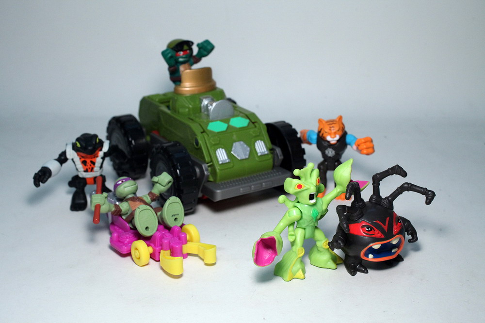 Other Mutations options include the Shellraiser to City Sanitation Truck with Donnie. And then there are other vehicles that come with figures as well.