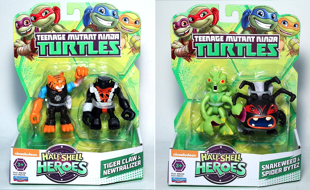 Speaking of enemies, there are figure 2-packs of both enemies and friends, also priced at $8.99. Here’s a look at Tiger Claw & Newtralizer and Snakeweed & Spider Bytez. The packaging is very similar to the Donnie & Luge, with the figures openly exposed to the elements. That doesn’t mean it’s easier to remove out of packaging, but it does mean kids can clearly see what toy they’re getting without having to open the package.