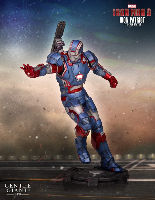 Utilizing digital sculpt and scan data files from the original motion picture Iron Man 3, Gentle Giant has recreated Iron Patriot in this detailed 9 inch tall 1:7 scale statue. This collectible was printed on top of the line 3D Systems printers, making it possible to capture the intricate details of the character’s costume and accessories in spectacular high-resolution. Each Iron Patriot 1:7 scale statue is hand-cast, hand-painted and hand-numbered with a limited edition certificate of authenticity.