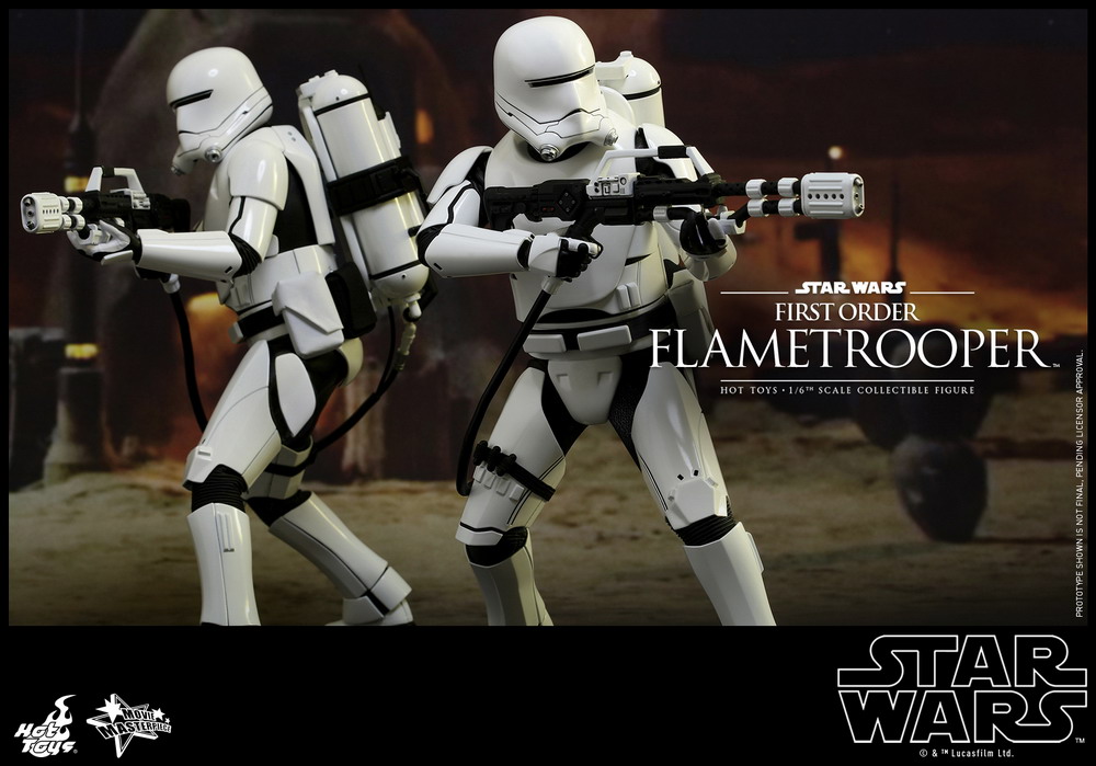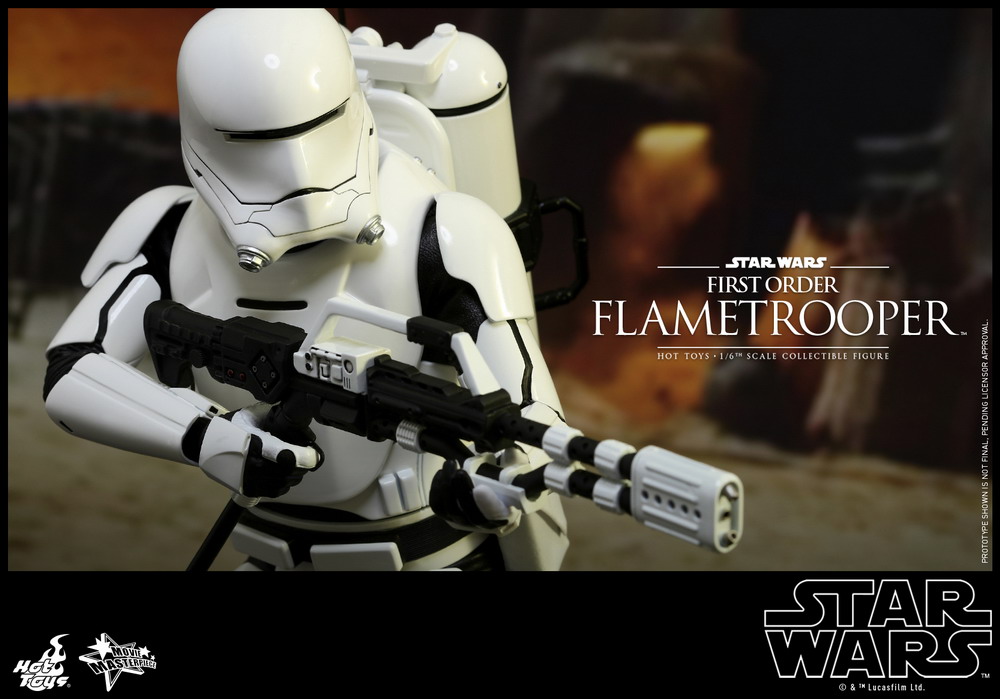 The Hot Toys 1:6th scale First Order army continues to grow today with the official reveal of the First Order Flametrooper collectible figure from Star Wars: The Force Awakens. These specialized troopers are depicted for the first time on the silver screen as they carry dangerous incendiary weapons that can transform a battlefield into an infernal blaze!