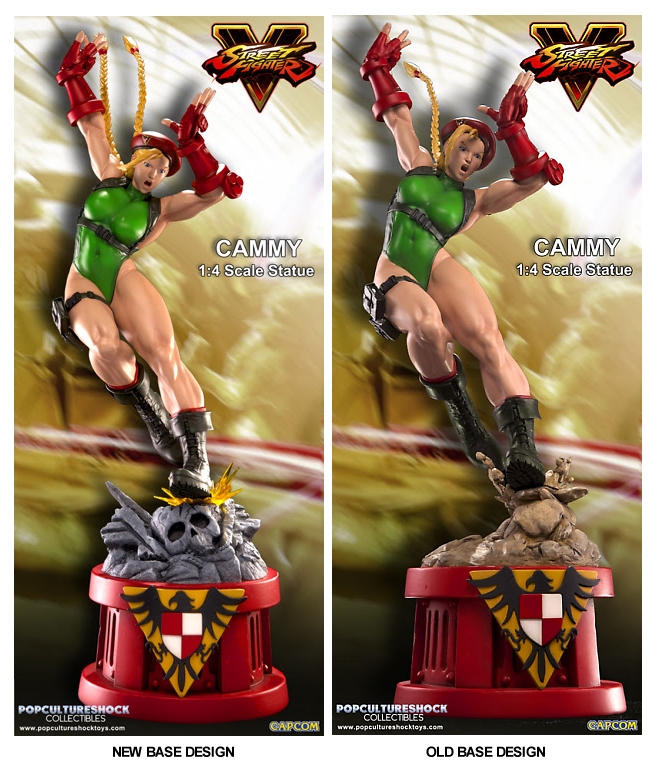 As announced HERE, Pop Culture Shock was working on revisions to the base of their upcoming 1:4 Street Fighter Cammy statue. The changes came from some collectors who felt the base made it appear that Cammy was "slipping on mud". Well those revisions are now complete with Cammy now featuring a cool rocky base with a skull and "blast effect". It's still pending approval, but I'd say it's a drastic improvement.