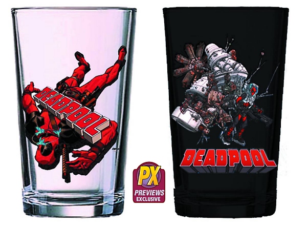 Make a toast to Deadpool with your own PREVIEWS exclusive Deadpool Pint Glass 2-Pack Set! Celebrate the Merc with the Mouth with a clear and black pint glass set featuring two different images of Deadpool being Deadpool. The set of two glasses is available to order for $19.99 using item code NOV152771 and will arrive in shops in mid-February 2016.