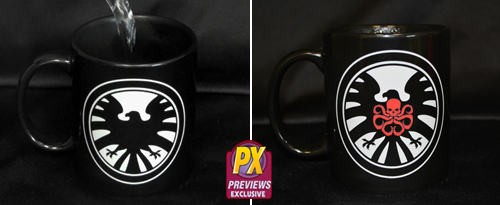 Those more inclined to conceal their loyalties can instead order a Hydra Heat Change mug, offered again in the November PREVIEWS. Though it looks like an ordinary S.H.I.E.L.D. logo mug, the Hydra logo appears when a hot drink is added! This mug is in stock now to order using item code NOV152780 for $15.99. Both mugs will arrive in comic shops in mid-December, just in time for the holidays!