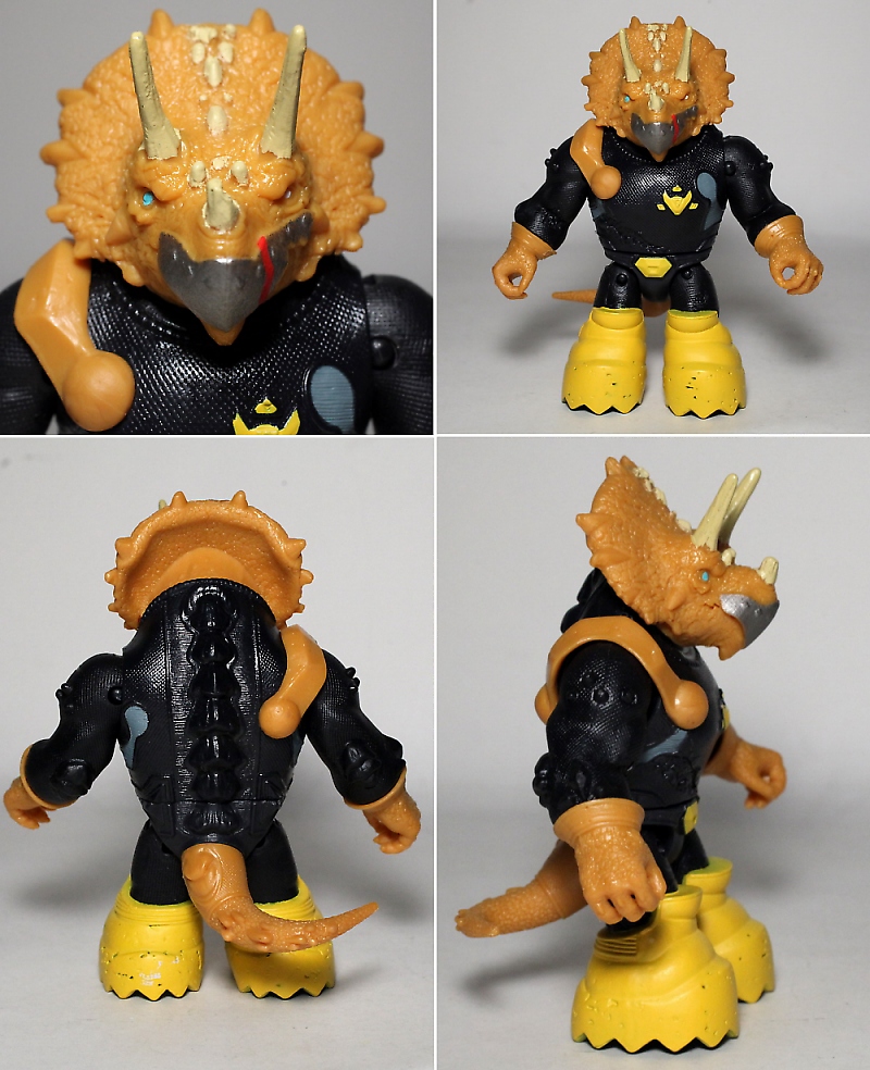 Fugitoid, the scientist stuck in the body of an android, is the scrawny white robot and looks pretty close to the cartoon in sculpt but paint-wise, doesn't quite look like his toon counterpart. The black goggles should be white and I don't recall a yellow marking on his ribs. It's always interesting to see how the toys and the cartoons can be so different in color appearance.