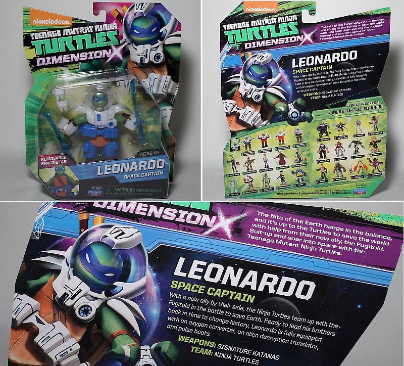 The turtles are back and are their popularity is sky high. And if the sky's the limit, these heroes in a half shelf are taking it up to space in a new batch of figures from Playmates Toys called Teenage Mutant Ninja Turtles Dimension X. In this story that kicks of Season 4, the four turtles: Leonardo, Donatello, Michelangelo, and Raphael team up with Fugitoid, a scientist brain stuck inside a cyborg's body, who supplies space suits and weapons. With his help, the Turtles track down the Triceratons to save planet Earth.