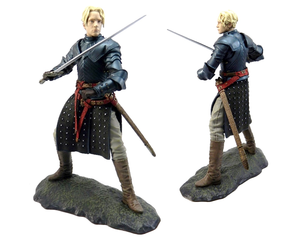 Brienne of Tarth is also no slouch. Played by Gwendoline Christie (soon to be Star Wars famous as Captain Phasma), the female warrior is fearlessly devoted to her just causes. I really enjoyed her story arc with Jaime Lannister and look forward to her (hopefully) kicking Ramsay Bolton's sadistic butt. This 8 1/2-inch tall figure depicts the Amazonian-like Brienne clutching her Valyrian steel longsword, Oathkeeper, a beautifully sculpted weapon. I should note here that the swords for both figures - The Hound and Brienne - feature blades that are separate attachments. This is done to insure they don't get broken in shipping and also guarantees a straight blade when attached to the figure. Aside from her cool sword, Dark Horse also did an excellent job on Brienne's sword sheath and armor. The ornate sheath really stands out with the red belt attachment and her armor - a mix of bluish plate mail and leather skirt - look phenomenal.