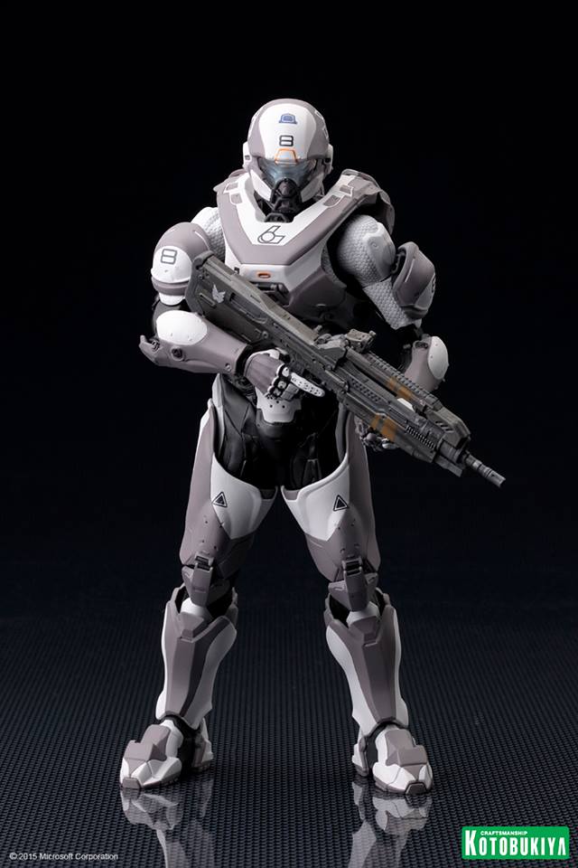 The heavy duty assault armor is three-toned with ghostly white, gray, and black for a super clean look, and orange details and the blue visor really pop. The Athlon armor set comes with additional interchangeable parts like hands in different positions, and like the rest of the new Halo ARTFX+ line the internal techsuit body even has limited articulation for posing options. Sculpted by M.I.C., the Spartan Athlon stands nearly 8 1/2 inches tall (1/10th scale) and comes with magnets in his feet for added stability on his included metal display base.