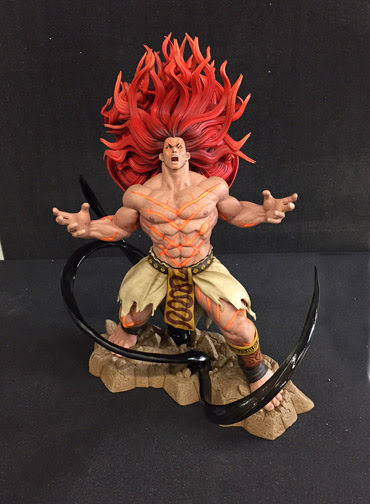 The Aztec-inspired warrior is sculpted in "V-Trigger" mode, where the fighter's appearance changes dramatically. His hair bursts loose from its bonds, lengthens, and glows bright red.