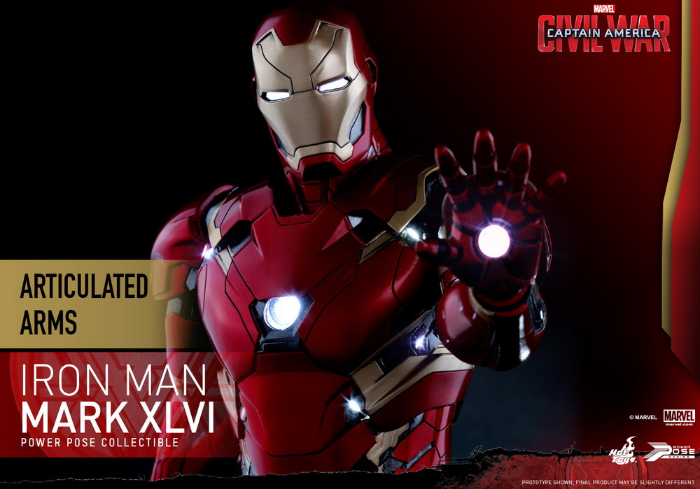 - Authentic and detailed likeness of Mark XLVI in Captain America: Civil War