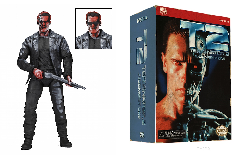 NECA provides a look at their next Classic Video Game Appearance action figure: the T-800 as seen in 1991’s Terminator 2: Judgment Day video game. The 7-inch figure utilizes NECA's new “Ultimate” body, with nearly 30 points of articulation. Special paint deco reproduces the game’s pixilated look, and the window box packaging re-creates the look and feel of the classic video game cartridge box. Includes two interchangeable heads (regular and battle-damaged) and a shotgun accessory.