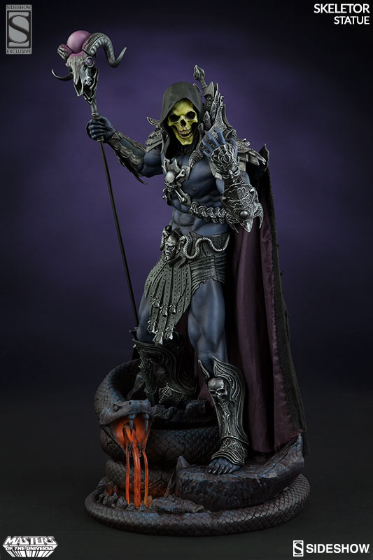Ready to face He-Man in Sideshow's new statue collection inspired by the popular 80’s cartoon series Masters of the Universe, Sideshow is proud to present the Overlord of Evil himself – Skeletor. Wielding his enchanted Havoc Staff to command an invisible horde of henchmen and minions, Sideshow’s artists have brought the sinister villain to life with ornately sculpted battle armor and a removable cape.