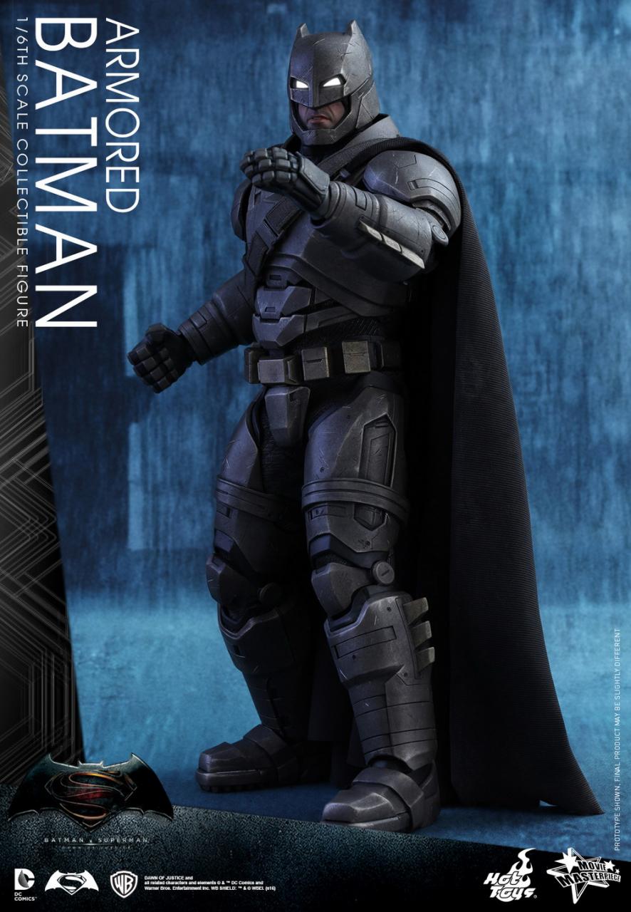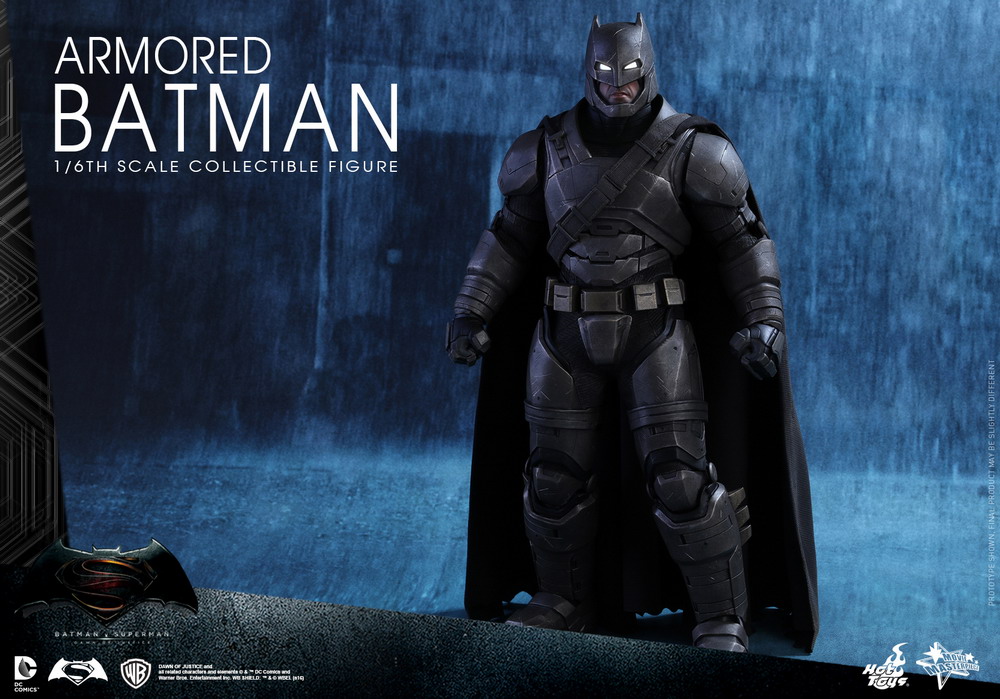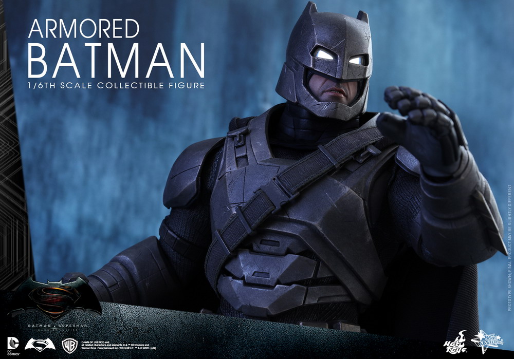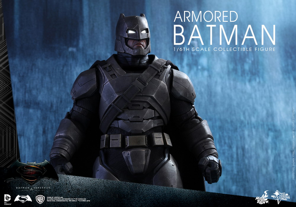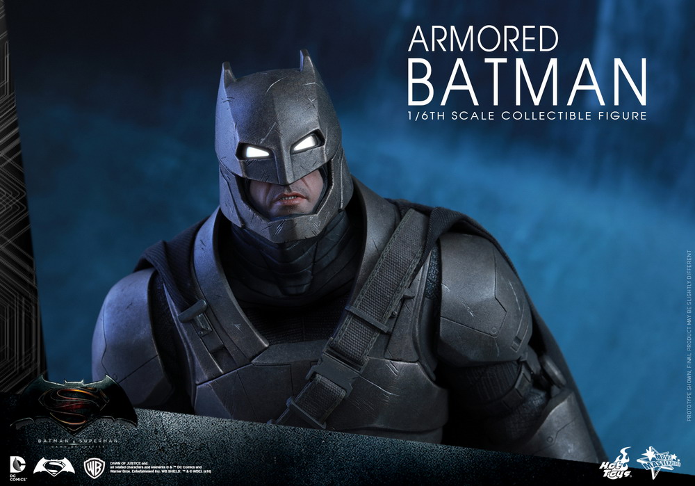 The movie-accurate collectible figure is specially crafted based on the image of Ben Affleck as Armored Batman from the film. It features a newly developed armored head with LED light-up eyes and two interchangeable lower faces capturing Ben Affleck’s facial expressions, meticulously crafted armor with weathering effects, detailed Batman weapons, and a specially designed Batman v Superman: Dawn of Justice themed figure stand.