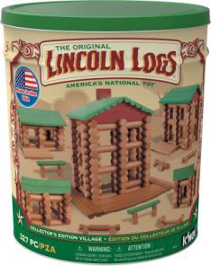 One of the biggest Lincoln Logs sets ever created! The LINCOLN LOGS Collector’s Edition Village set is 100% made in the U.S.A, and includes 332 real wood Lincoln Logs pieces. Packaged in a large, collectible tin for fast and easy clean-up. Suggested retail price is $109.99.