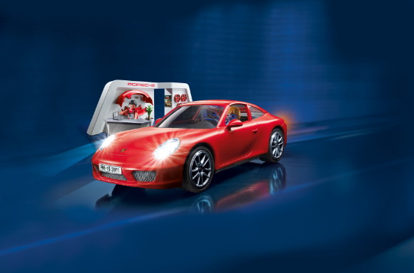 Cruise the streets in luxury with the Porsche 911 Carrera S. Tour the road in the base model or take it to the shop and upgrade it with a rear spoiler, front apron, and red rims. Equipped with the functioning front, rear, and dashboard lights, this vehicle makes it easy to navigate the road at night. Set includes Porsche, two figures, show wall, rear spoiler, front apron, eight rims, car jack, tools, LECHUZA planter and other additional accessories. 3 x AAA batteries required.