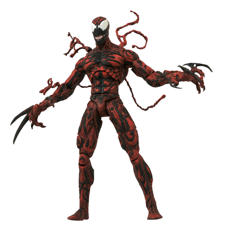 Because you demanded, it – more Carnage! DST's Carnage action figure was a smash hit with collectors, and now he’s returning for a second strike! Measuring approximately 8” tall, the Carnage action figure has detailed sculpt and paint details, and features 16 points of articulation as well as a variety of interchangeable parts and accessories. Three interchangeable heads, regular hands, weapon hands and removable tendrils allow you to customize your figure's appearance however you wish! Comes packaged on a display-ready Select blister card with spine artwork for shelf reference. Sculpted by Jean St. Jean! SRP: $24.99