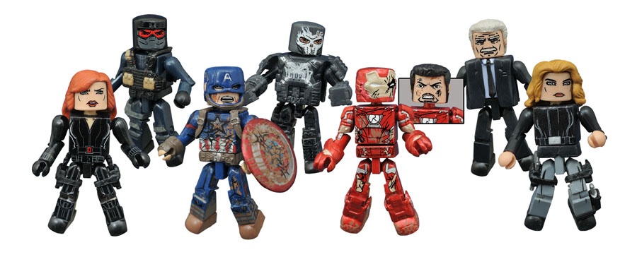 Get ready for Round 2! The action of Marvel’s Captain America: Civil War continues with a second assortment of Minimates mini-figures based on the film! In this next batch of two-packs, Battle-Damaged Captain America takes on Battle-Damaged Iron Man, Black Widow meets Crossbones, Agent 13 faces an evil Thug and a rare, one-per-case variant set pairs Secretary Ross with another Thug! Each 2-inch Minimates mini-figure features 14 points of articulation, as well as character-appropriate accessories and fully interchangeable parts. Designed by Art Asylum! SRP: $9.99/ea.