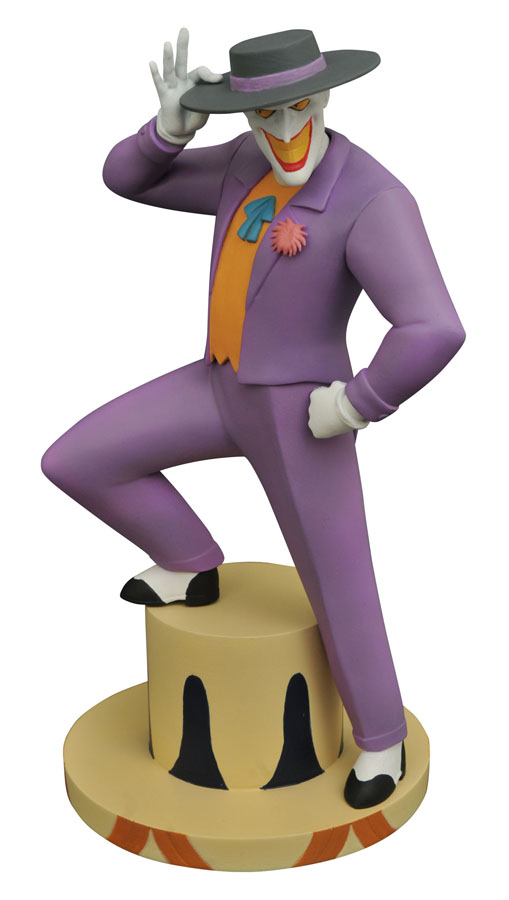 This is no joke – the Joker is the second figure in the Batman: The Animated Series Gallery line! Joining the previously offered Batman, as well as the classic cartoon’s numerous Femme Fatales, this 9-inch scale PVC figure of The Joker depicts him wearing his famous wide-brimmed hat, with one foot on a ringmaster’s pedestal, and is sculpted with a high level of detail with exacting paint applications. Packaged in a full-color window box, he is in scale to other Gallery and Femme Fatales PVC figures. Sculpted by Sam Greenwell! SRP: $45.00
