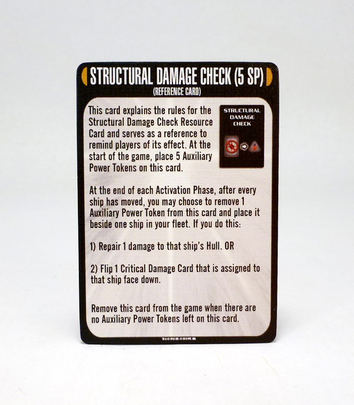 Just for participating in a Doomsday Machine event players will get an exclusive Structural Damage Check Card, a new resource you can add to your Attack Wing fleets. The card lays out all the rules for this 5 point add on. At the start of the game put 5 Auxiliary Power Tokens beside the card, and at the end of each Activation Phase you can move one of those tokens to one of your ships. In exchange for applying the Auxiliary Power Token you have a choice of two effects: 1) repair 1 damage to that ship’s hull or 2) flip 1 Critical Damage card face down! For 5 points this is a useful resource, especially for those players who always seem to get struck with lingering and annoying Critical Damage, though you do have to balance the effects of the auxiliary power condition. There are certain abilities and actions in the game that key off of or avoid these effects and work especially well with Structural Damage Check, like the new Auxiliary Control Room Upgrade (see below).