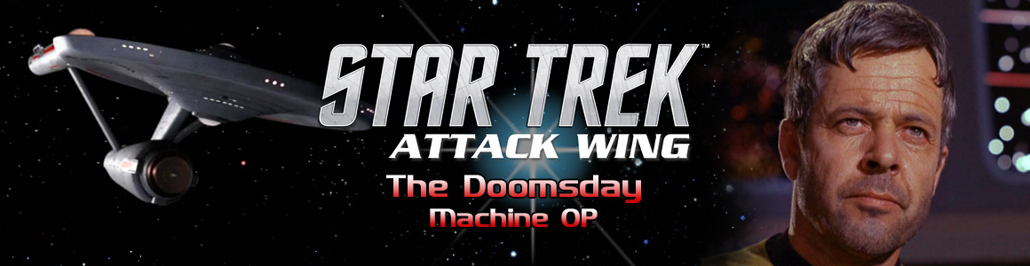 If you’re a fan of Star Trek, spaceship battles, and board/miniatures games, you should already be playing Star Trek Attack Wing from WizKids Games. Attack Wing started in 2013 and brings fast-paced, “easy to learn/challenging to master” capital ship combat to your gaming table using the unique FlightPath Maneuver System, upgrade cards letting you customize your crews, weapons, and more, and of course high quality small-scale miniatures of your favorite starships from across the Star Trek universe. There are vessels from all of the major races/factions (and several minor ones) stretching from the Original Series to Enterprise, Voyager to the movies, and the game has even been a pioneer in bringing players and fans ships that have never before been made as collectibles! And because it’s WizKids, in addition to great game elements you can buy in stores there’s also a thriving competitive community fueled by Organized Play prize kits with exclusive content you can only get access to in brick and mortar shops. The latest, which we’ll be looking at here today, is The Original Series Organized Play Event: The Doomsday Machine that celebrates the classic Star Trek episode and brings familiar faces and ships into the game!