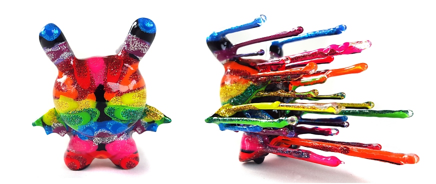 Josh Mayhem's latest Blown Away Dunny Series is now available exclusively on Kidrobot.com. This limited edition series features both 3-inch and 8-inch versions of the popular Blown Away style Dunny. The Blown Away Dunny has been modified with resin drips and acrylic paints to create a wind swept appearance. Kidrobot and Josh Mayhem have previously partnered together to release a special DesignerCon Edition Blown Away Dunny Series.