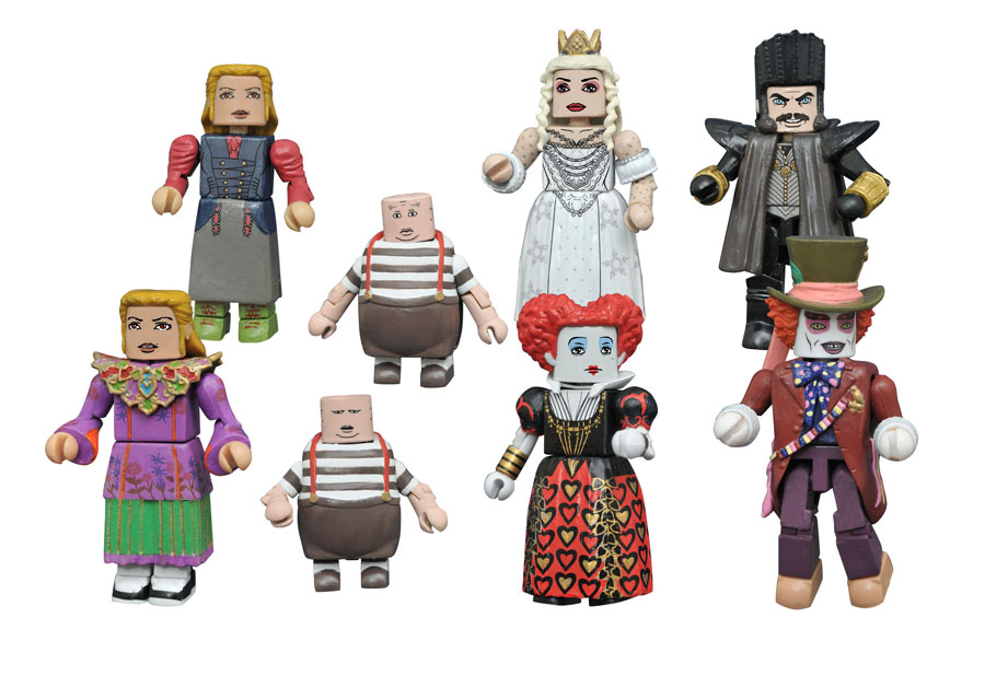 It’s time to go through the looking glass! DST takes on the sequel to Tim Burton’s Alice in Wonderland with a new assortment of Minimates mini-figures based entirely on Alice Through the Looking Glass! Four two-packs featre the Mad Hatter with the Red Queen, Time with the White Queen, Alice with Tweedledee and a rare one-per-case set of Ribbon Fantasy Alice with Tweedledum! Each 2-inch Minimates mini-figure features up to 14 points of articulation and fully interchangeable parts. Each two-pack is packaged in a full-color blister card. (Item #APR162615, SRP: $9.99/ea.)