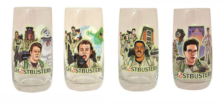 Raise a toast to the heroes of New York City! For repulsing an invasion by Gozer the Gozerian, DST has issued four commemorative tumblers featuring each of the four Ghostbusters – Peter, Ray, Egon and Winston. Featuring all-new artwork and scene descriptions, these tumblers look like what you would have gotten back in 1984, had the original Ghostbusters movie received promotion at fast-food restaurants. Each tumbler is packaged in a full-color window box, each sold separately. Hand-wash only.