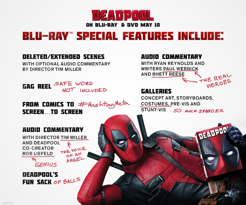 DEADPOOL will be available on Blu-ray and DVD May 10 from Twentieth Century Fox Home Entertainment.