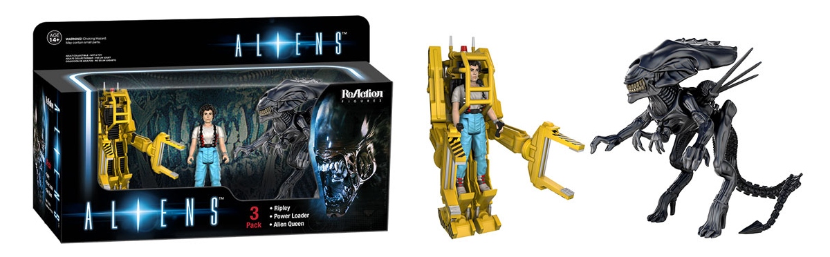 We overlooked this bit of Alien Day news yesterday. Funko is also getting in on the fun with new ReAction and POP Vinyl Figures based on Ripley's showdown with the Alien Queen from the movie ALIENS. Arriving in August, fans have a choice of a ReAction figure 3-pack featuring Ripley, Power Loader and Queen, as well as POP figures of Ellen Ripley and a deluxe 6-inch Queen Alien!