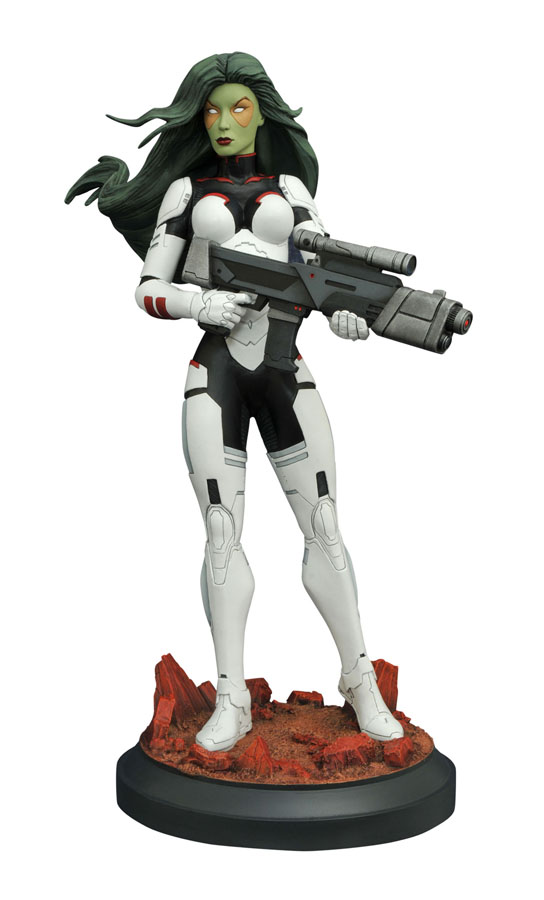 Where’s Gamora? She’s the newest statue in the Marvel Premier Collection! This approximately 12” resin statue depicts the former agent of Thanos, and current Guardian of the Galaxy Gamora wearing her distinctive white space armor. Holding a massive pulse rifle at the ready, this deadly warrior is posed for action! This high-quality sculpture is limited to only 3,000 pieces, and comes packaged with a certificate of authenticity in a full-color box. Sculpted by Jean St. Jean! (Item #MAY162406, SRP: $150.00)