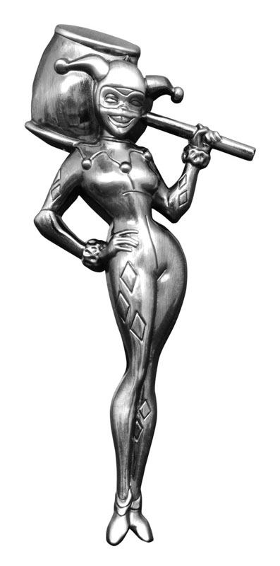 If she can bust the Joker out of Arkham Asylum, then she can open your bottle! Based on her appearance in Batman: The Animated Series, this sculpted metal bottle opener of Harley Quinn holding her oversized hammer can remove any bottle cap faster than you can say “puddin’”! A must-have for any Harley Quinn fan, or giant mallet enthusiast! Measuring approximately 5 inches long, it comes packaged in a full-color collector slipcase. (Item #MAY162403, SRP: $18.00)