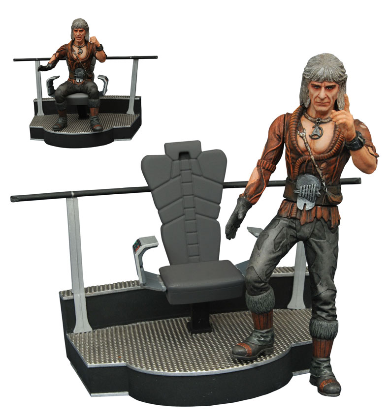 They say revenge is a dish best served cold, but revenge has never been this cool! Measuring approximately 7 inches tall, this action figure of Khan Noonien Singh, as he appeared in Star Trek II: The Wrath of Khan, comes with the command chair of the U.S.S. Reliant, as well as numerous interchangeable parts. With alternate legs, arms, hands and a head, you can have him seated or standing, shaking his fist or crossing his arms, shouting or savoring his victory. Just in time for the film’s 35th anniversary, this figure comes packaged in display-ready Select packaging, with spine artwork for easy shelf reference. Sculpted by Patrick Piggott! (Item #MAY162393, SRP: $24.99)