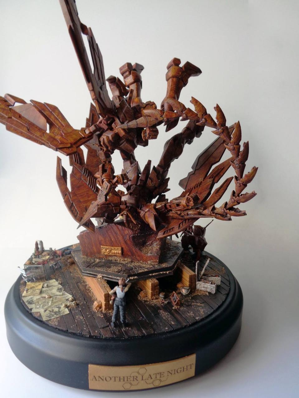 The 2015 World Champion winner, Win Eiam-Ong, created a breathtaking entry, titled “Another Late Night,” a diorama that depicted a carpenter admiring her latest masterpiece – a Gundam model realistically painted to look like it was constructed entirely of wood (see photo below).