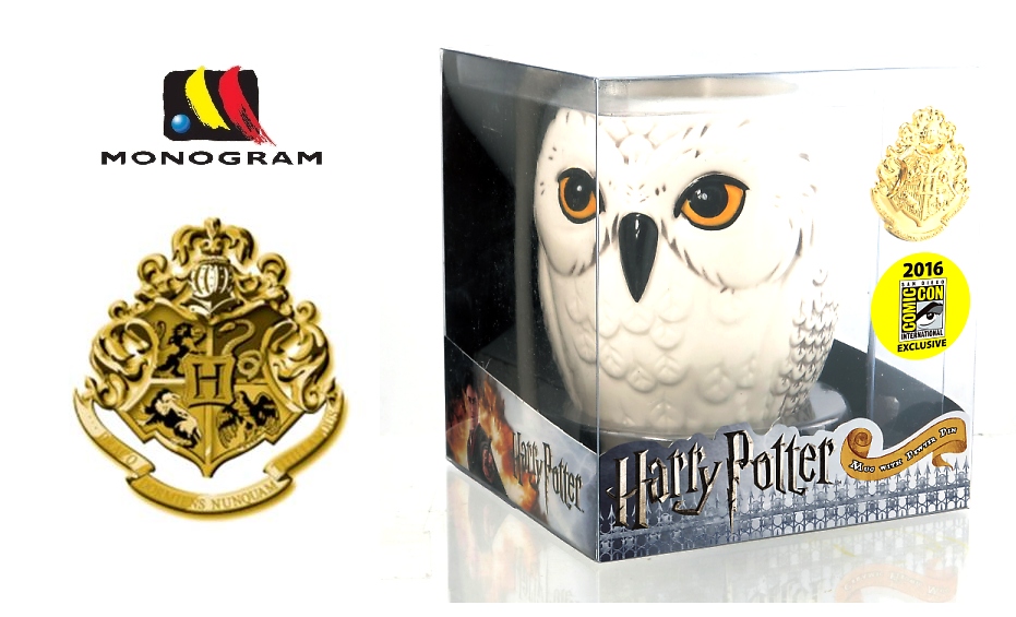 The first SDCC'16 exclusive is from the magical world of Harry Potter, the Hedwig Mug Set. The package includes Harry Potter's pet owl as a collectible mug, along with a Gold Pewter Lapel Pin of the crest for Hogwart's School of Witchcraft and Wizardry. This exclusive set will be limited to 500 pieces, each priced at $20.