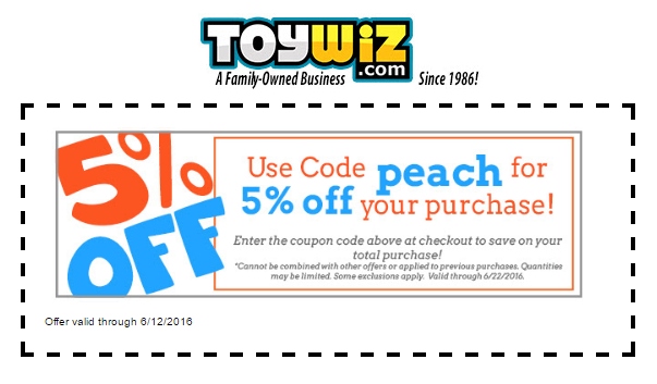 ToyWiz.com has thousands of in-stock items. Use the coupon code PEACH and receive 5% off your purchase! Shop from an incredible selection of the newest and most popular action figures, toys, and collectibles including: