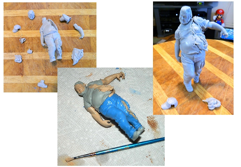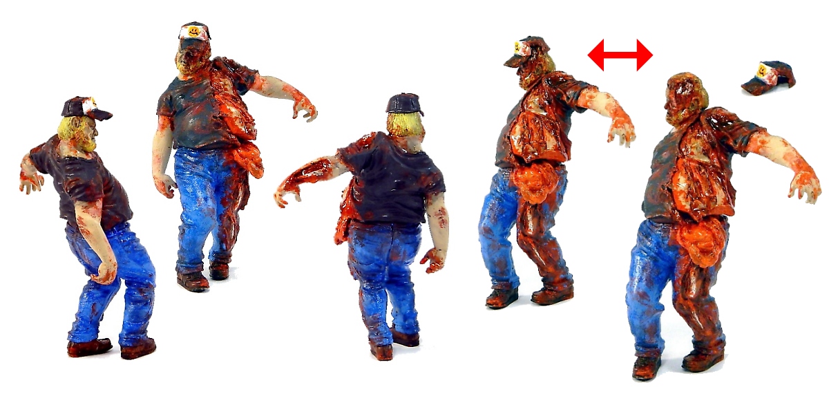 Building each model kit takes beginners level skill. These are not snap kits, so model glue (or super glue) will be required. I also recommend a sharp hobby knife, such as an X-Acto Blade. You'll need it to trim flash off some of the parts, as well as cutting them cleanly off their sprue. The instructions, while an awesome inclusion, are really not needed as each character is rather straightforward to create. Left and right arms and legs go where you'd imagine, body halves come together and the head goes on top. Easy peasy. Some characters, such as the Truck Driver, have optional parts. His include a baseball cap and some innards spilling out. I dunno about you, but these felt like must-have parts on a zombie truck driver, so I included both on my model.