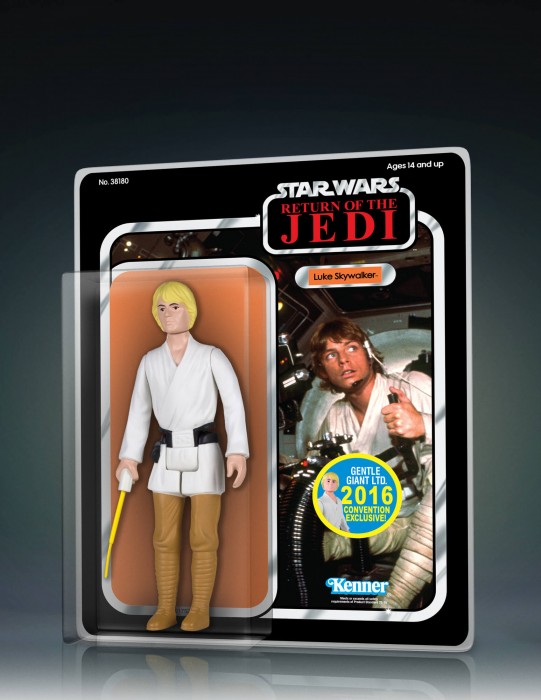 Gentle Giant has revealed their first San Diego Comic Con 2016 exclusive: a Star Wars Jumbo Figure of "Farm Boy Luke". With paint and packaging matching the original 1983 Return of the Jedi action figure, Gentle Gian't Jumbo version will be offered with brown and yellow hair. Both figures are limited to only 250 pieces.