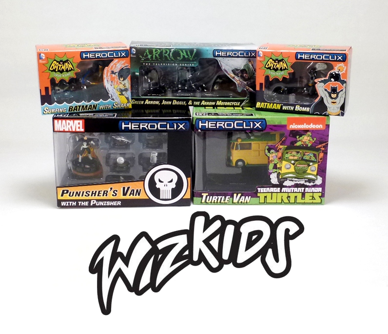 Every year WizKids Games creates an assortment of HeroClix game pieces that are exclusive to conventions, and these include both for-purchase items and prize figures only available in sanctioned events. Oftentimes these Convention Limited Edition figures (Con LEs) are alternate versions of popular characters, fun additions to the game, novelty characters, and the like. For 2016, the for-purchase Con LEs are coming to San Diego Comic-Con in a few weeks... and they’re pretty amazing. For players and collectors WizKids will have the following lineup: Marvel HeroClix: Punisher Van, Teenage Mutant Ninja Turtles HeroClix: Turtle Van, DC Comics HeroClix: Arrow Pack, DC Comics HeroClix: Surfing Batman with Shark, and DC Comics HeroClix: Batman with Bomb. Not sure about what these are or what they look like? Well, read on for a full look at all of them and get your wallets (and comfortable shoes) ready for SDCC!