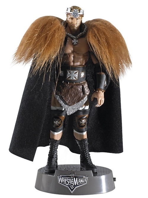 Next up is a brand new line of "Entrance Greats" celebrating the most fantastic and over the top Superstar arrivals. These will include Triple H in his Germanic "King of Kings" outfit, Rey Mysterio in his Aztec bird costume, and Shawn Michaels in the fancy white jumpsuit he wore when he famously rappelled from the ceiling at Wrestlemania 22. All of the accessories are removable, and underneath is a Basic body. Each figure stands on a substantial display base that plays the entrance music for the Superstar! These will be more limited than regular figures, so don’t pass them up. Entrance Greats will retail for approximately $21.99.