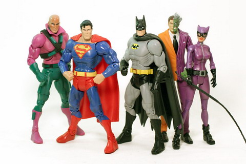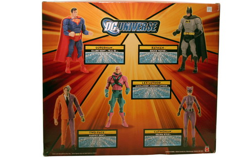 Long time collectors will quickly notice that four of the five figures - Superman, Batman, Two-Face, Catwoman - are repaints from the DC Superheroes and DC Universe Classics lines, but the fifth figure is all new: Lex Luthor. Only one previous Lex Luthor figure in his battle armor was made prior, but this figure packaged here is all-new.