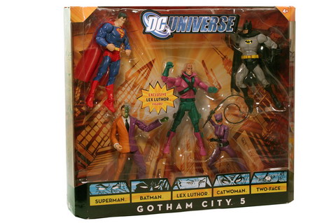 PACKAGING: All five figures are packed visibly in an attractive box with the “exclusive” Lex Luthor in the dead center with the Gotham villains on the bottom and our heroes on the top.