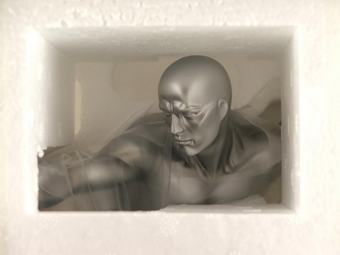 The sculpting of the figure is superb. Taking cues from some of the classic masters of sculpting, Seijiro Manabe has created a figure that is sleek and lean and invokes a sense of grace and majesty. With his left hand firmly gripping the front of the board, the Surfer appears strong and resolute. There is no doubt that he is a powerful and dominating force and his grip symbolizes his ability to command a situation. The grip also causes his hand to take a fist like appearance from the front view, making it known to all who view him that if you see him coming directly at you, he is ready and willing to fight you if he needs to.