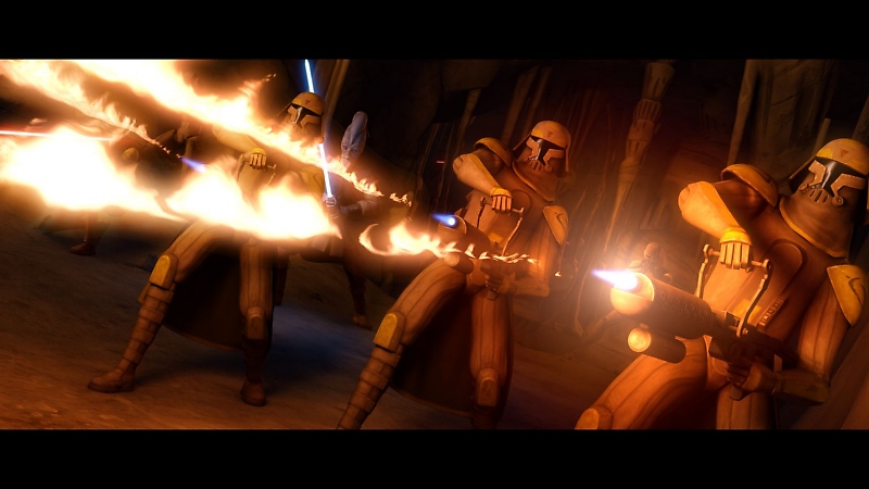 “Internally, we just keep getting better and better,” says Dave Filoni, supervising director of STAR WARS: THE CLONE WARS. “There’s no way we could have done something like this in the first season. We just didn’t have the assets to populate a battle this big, but we’ve learned so much and we’re still learning. It’s pretty amazing to be able to do something so theatrical and ambitious.”