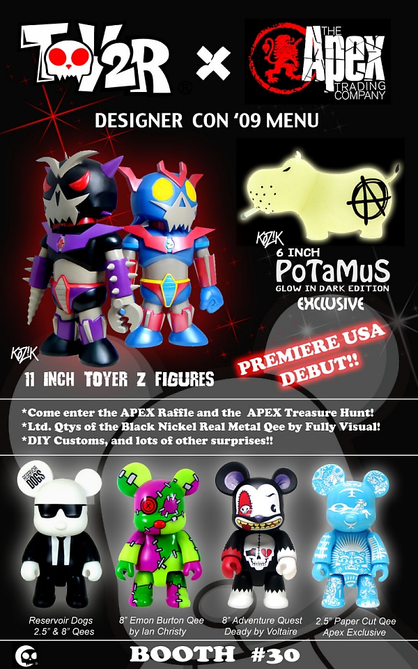 Toy2R and Apex Trading Company join forces to lauch the USA debut of several new releases during DesignerCon in Pasadena on November 21st.