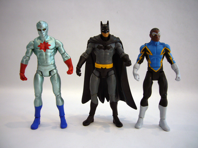 A couple of weeks ago I reviewed the Superman Batman Public Enemies Infinite Heroes Six Pack of figures, and now I’m back with one of the two three-packs now available at Targets everywhere. By now you all should have seen the film, so I won’t go into the story except where it relates to the three characters here. Both three-packs include one of the title characters (Superman or Batman) along with two others. Whether you consider some of the other to be heroes or villains will depend on whether or not you've seen the movie (or read the comics). Today we'll be looking at the pack with Batman, Captain Atom, and Black Lightning.