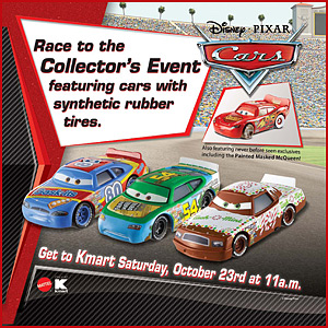 Exciting news! Mattel is hosting a CARS Collector Event on October 23rd at 11:00am in select Kmart stores nationwide.