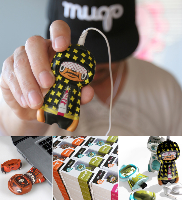 [HR][/HR]Presenting Mugo, the first limited edition designer MP3 player and USB flash drive. Artist Series 1, now available at mugoplayer.com, features limited designs by some of today's top urban artists, including Julie West, Shin Tanaka, Tougui and Yup. Mugo brings function to collectible toys by seamlessly integrating an MP3 player and USB data storage to this palm-size platform toy.