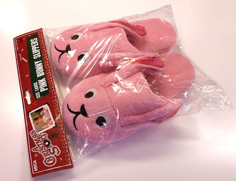 [HR][/HR]In one of this year's best kept secrets, NECA has released a new item under their "A Christmas Story" license: Pink Bunny Slippers. Anyone who has seen the holiday classic (don't miss the TBS marathon on Christmas Eve!) will instantly recognize this funny footwear - part of Ralphie's embarrassing Pink Bunny Suit gift from Aunt Clara.