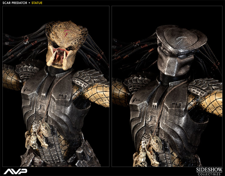 Sideshow is now accepting pre-orders on their latest Predator collectible: a statue of Scar from the movie Alien vs. Predator. This 19.5 inch tall piece is available as a Sideshow exclusive that includes an additional left hand with Xenomorph head shield and additional right hand with Xenomorph tail spear. Both the standard and exclusive editions are priced at $299.99 and scheduled to ship in June 2013.