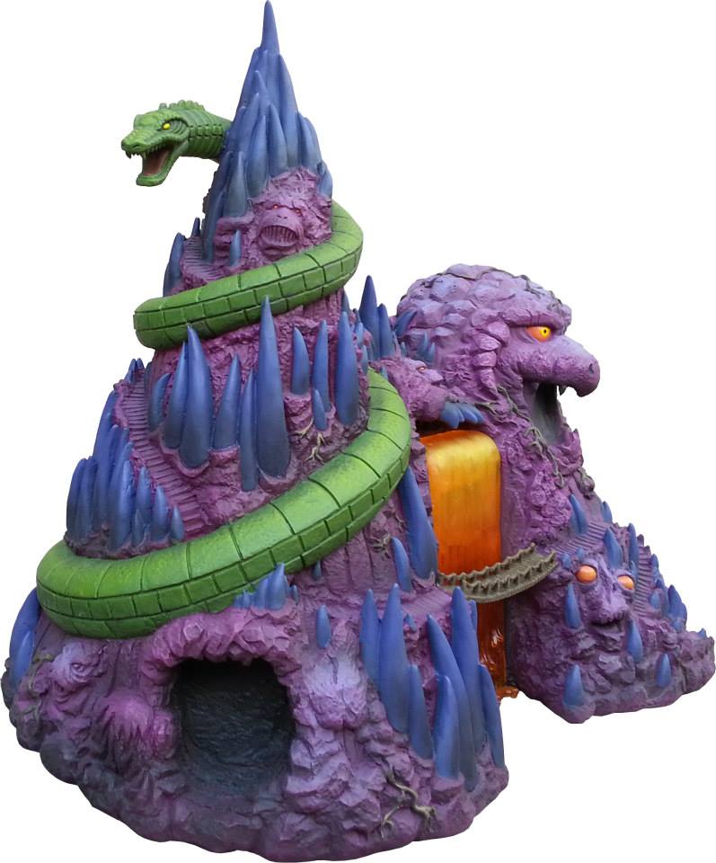 Snake Mountain. Evil Stronghold of Skeletor. When King Hssss and his cold blooded army invaded Eternia, they sought to booster their forces by freeing the mighty Preternian serpent deity Serpos from his underground prison. Together, the Snake Army and Serpos conquered much of Preternia, devastating the lands and enslaving all who got in their way. Eventually, the combined powers of the Elders were used against Serpos, tapping into the magic of the Star Seed to turn the great three headed serpent God into stone. Serpos’ remains eventually became known as “Snake Mountain” and would be used as a base of operations for many mages and warlocks throughout the centuries including Skeletor and his evil warriors who used Snake Mountain as a fortress to attack Randor and his Master of the Universe during the time of He-Man.